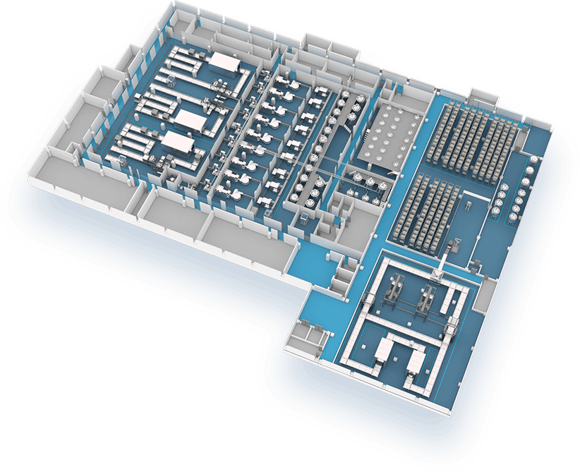 楚天科技智能口服液劑整體解決方案由數字化提取車間、自動化制劑車間、機器人包裝車間、原輔料立體倉庫與物流系統(tǒng)、信息化與數據中心5大核心功能模塊組成,以高效節(jié)能的工藝裝備系統(tǒng)與機器人產線為基礎,信息化系統(tǒng)為核心,自動化物流為紐帶,通過工業(yè)互聯(lián)網,實現(xiàn)中藥生產從前處理提取到產品包裝全工藝過程互聯(lián)互通與高效協(xié)同。構建了中藥生產大數據集成平臺,將工藝設備、控制系統(tǒng)、軟件系統(tǒng)的信息無縫整合為數字化藥廠模型,實現(xiàn)全廠從工藝設備、產線、車間的各類數據有效集成。滿足中藥生產運營的高效,高質量,安全,環(huán)保等要求。